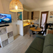 Bright living area with fully equipped open-plan kitchen and sofa bed