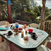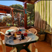 Beautiful furnished patio surrounded by greenery with sea view