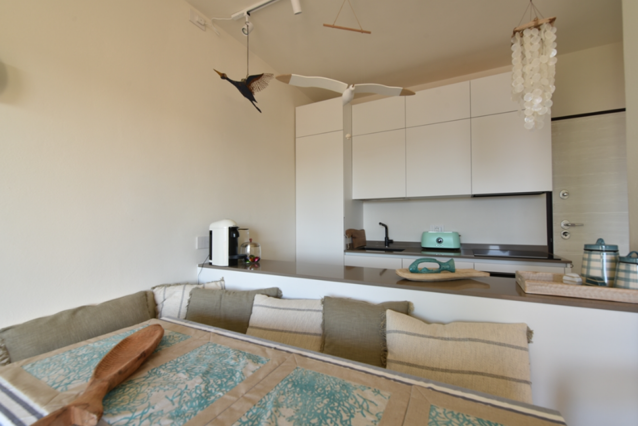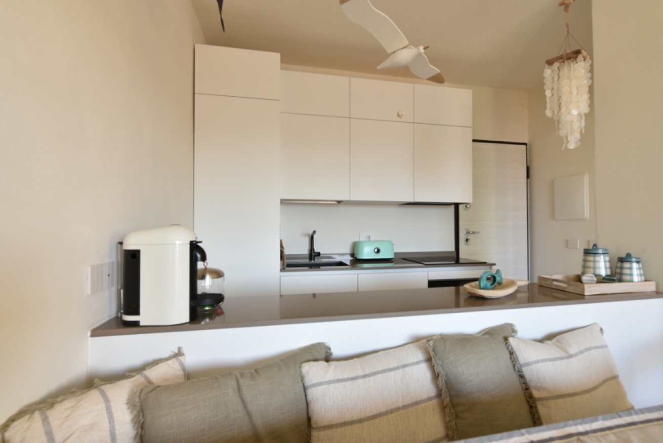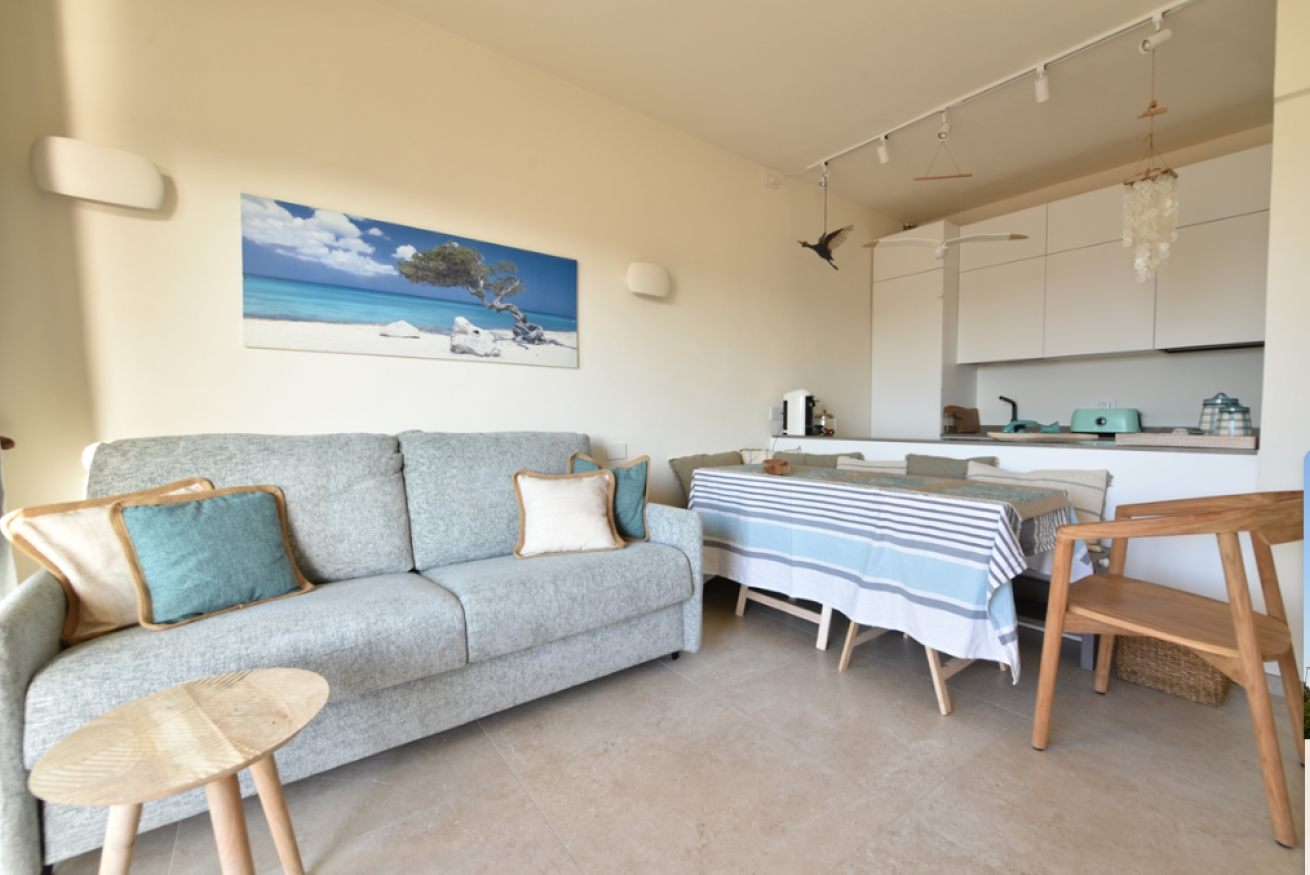 - Soggiorno con divano letto matrimoniale (160 x 190 x 17), aria condizionata, smart TV e cucina a vista completamente attrezzata