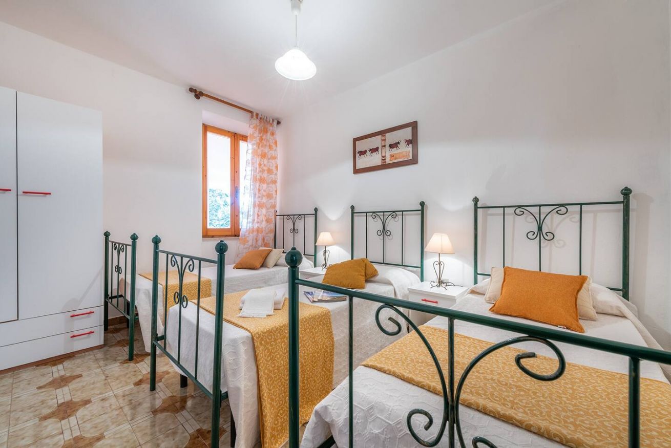 SPACIOUS APARTMENT located in a convenient position close to the beach and main services of Cala Gonone; situated on the ground floor and furnished in a basic manner, it consists of a large living area, kitchen with access to a balcony, double bedroom, two additional twin bedrooms, triple bedroom, bathroom, and a large outdoor space furnished with a table and chairs; easy parking is available near the house. TV, washing machine, oven, hairdryer, iron, and ironing board are provided.