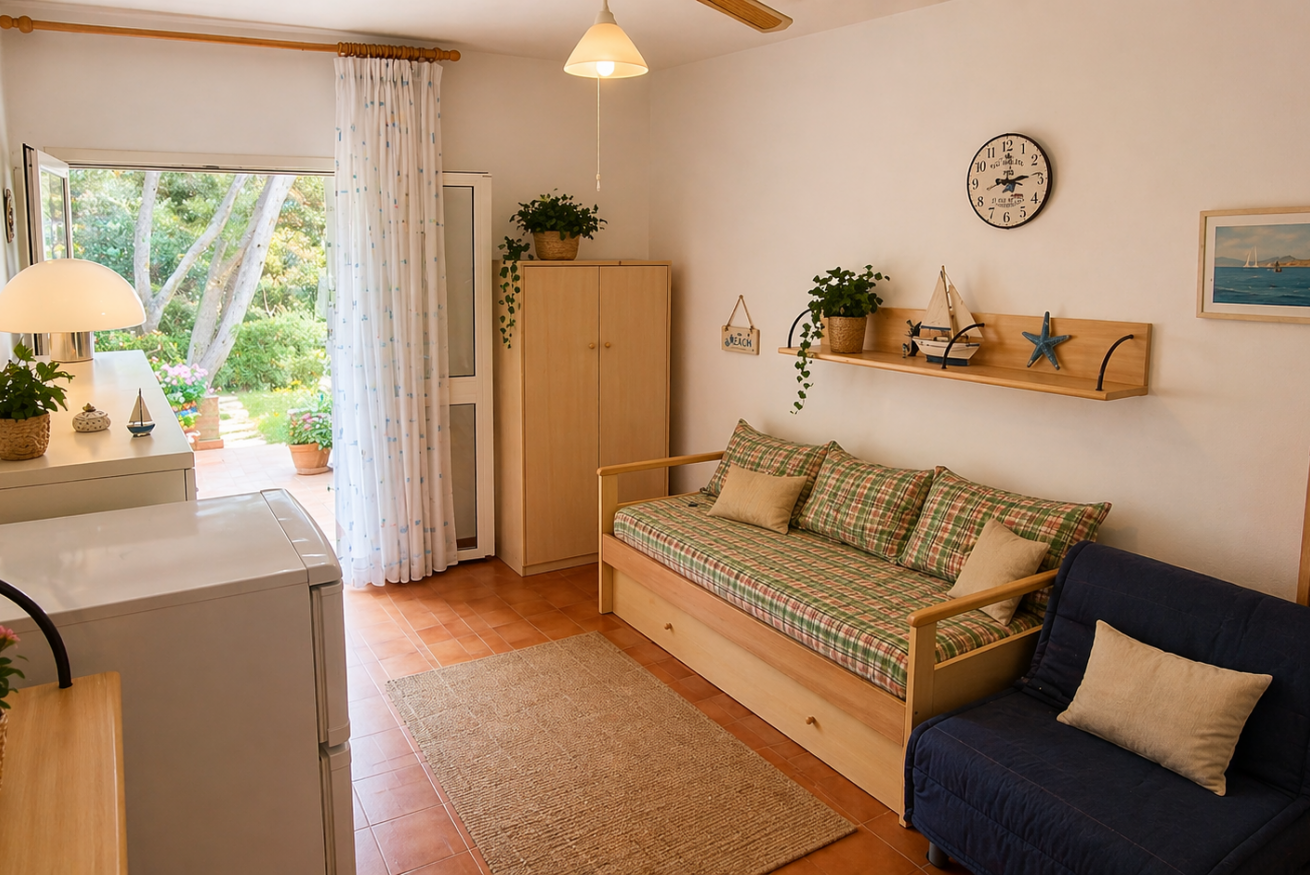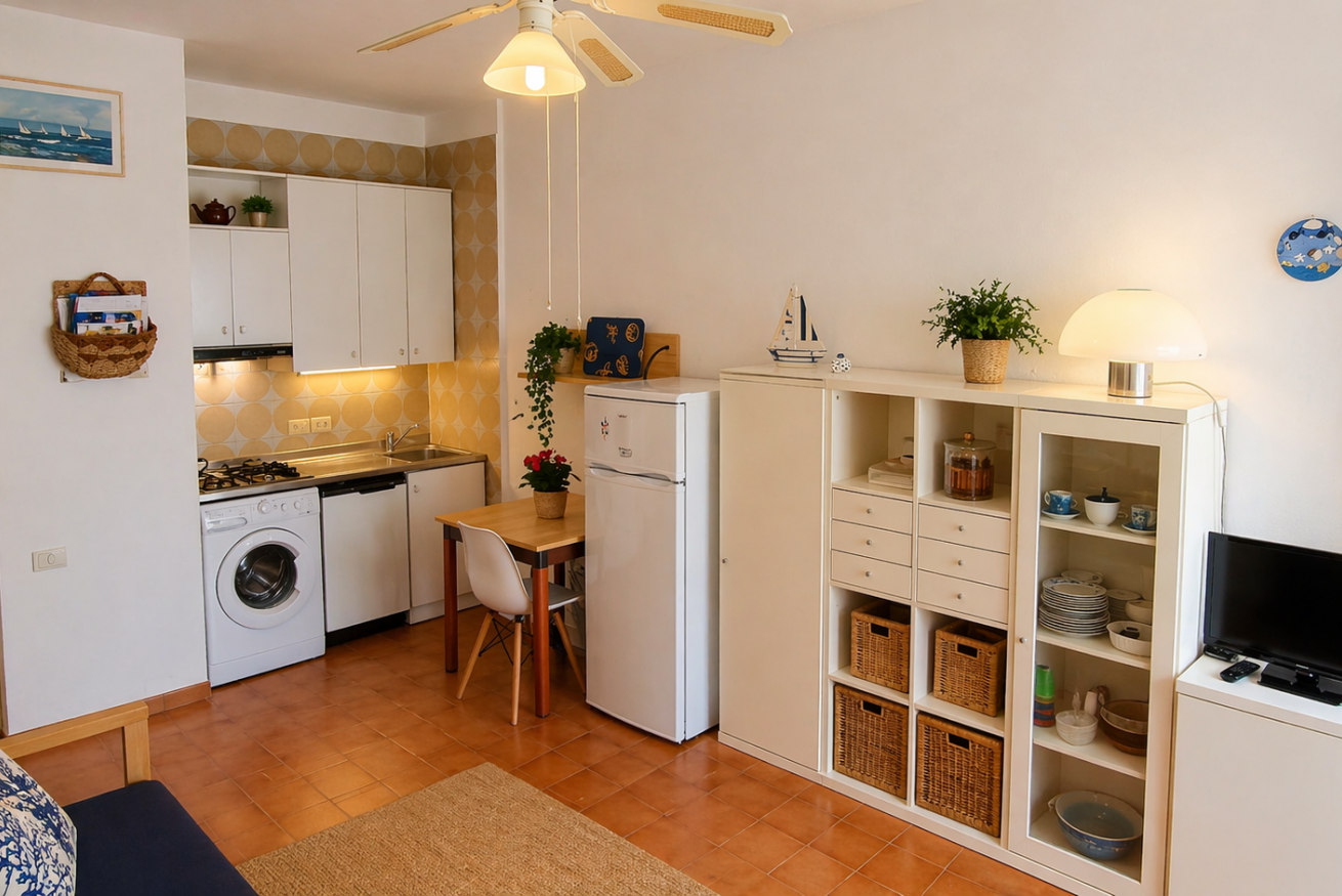 Mono Ibisco ist ein gemütliches, 25 m² großes Studio-Apartment in Stintino (Cala Lupo), ideal für Paare. Es liegt in einer ruhigen, grünen Anlage und verfügt über einen Wohnbereich mit Schlafsofa, Kochnische, Bad und eine überdachte Veranda. Ausgestattet mit Waschmaschine und Geschirrspüler, liegt es in der Nähe der schönsten Strände und Dienstleistungen.